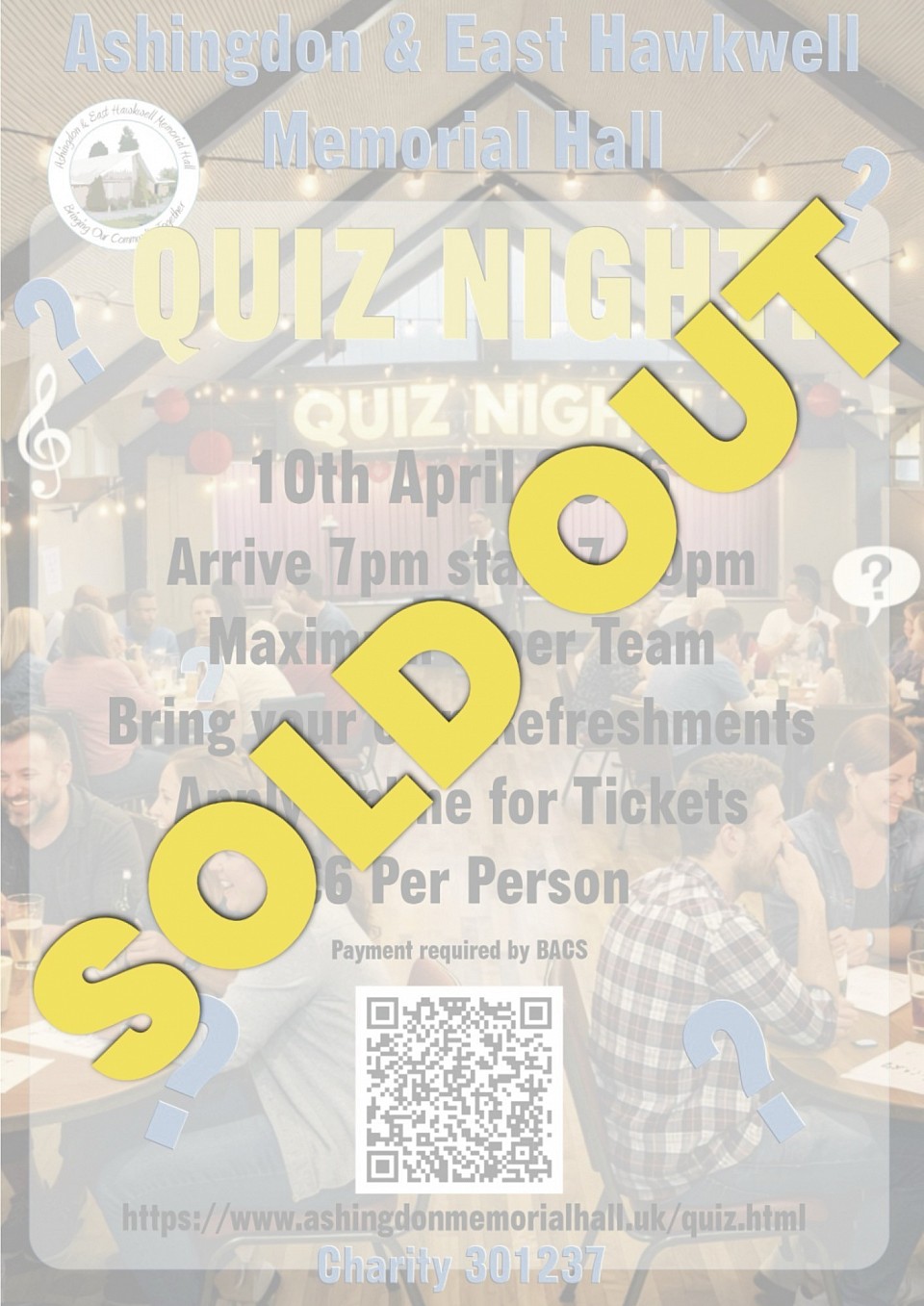 Thank you to all have bought tickets for our quiz night, all the tickets have now sold out.